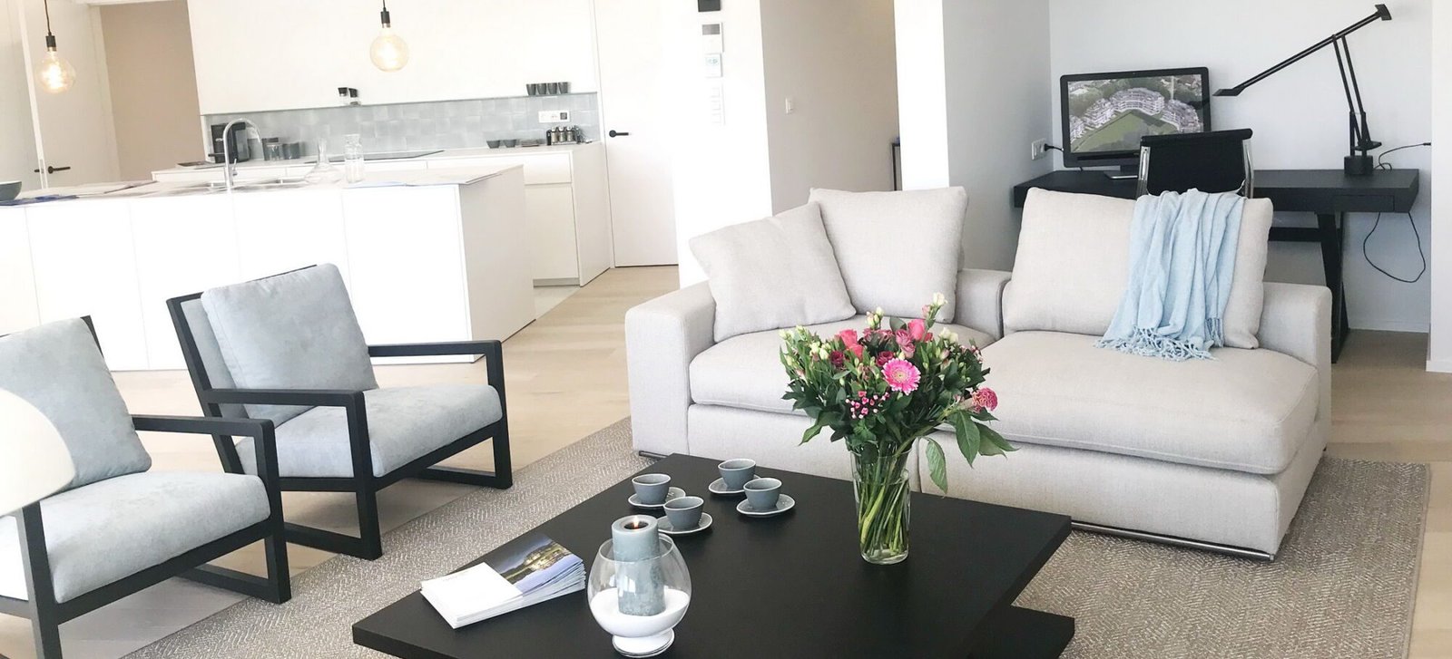 Alle appartementen hebben zon gerichte terrassen en zicht op de vijver en het groen, weg van alle drukte, lawaai of verkeer.