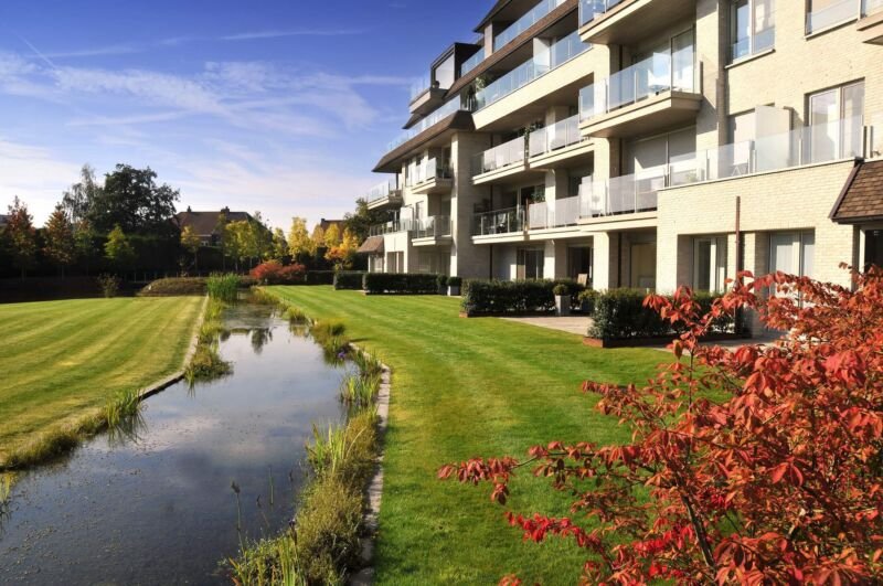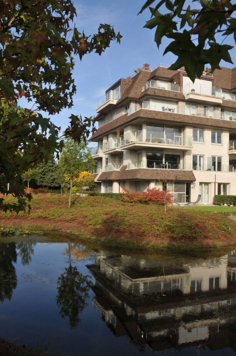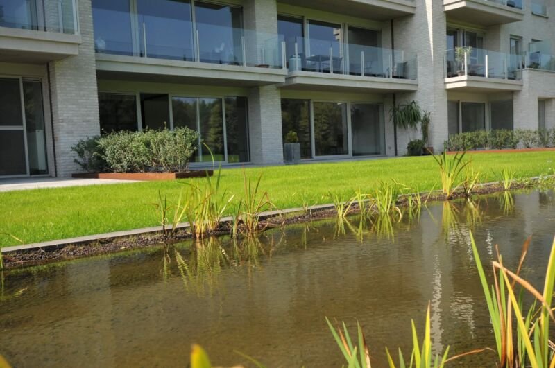 Alle appartementen hebben zon gerichte terrassen en zicht op de vijver en het groen, weg van alle drukte, lawaai of verkeer.