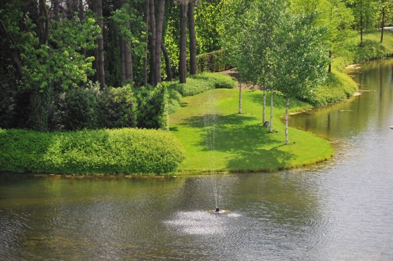 Wanneer u via de bomendreef, langsheen de inrijpoort, binnen inrijdt, biedt het unieke zicht over de natuurvijver, u en uw bezoekers een adembenemend welkom. Zacht glooiende grasvelden, langzaam overvloeiend in water, watervogels, groepjes bomen en struiken, een eiland maken dat het er goed is om te wonen en creëren, midden in stad, een groot gevoel van ruimte en rust.