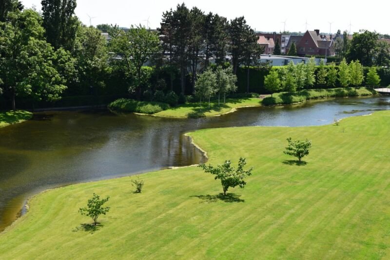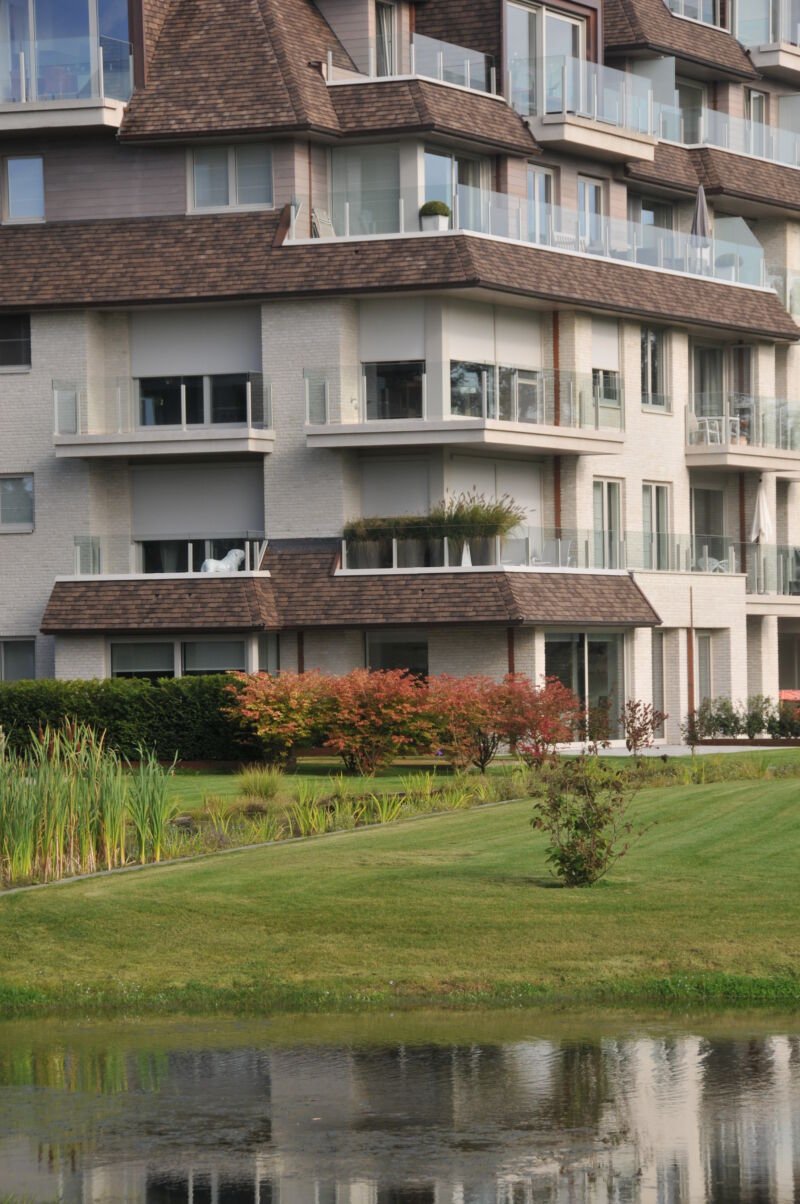 Alle appartementen hebben zon gerichte terrassen en zicht op de vijver en het groen, weg van alle drukte, lawaai of verkeer.