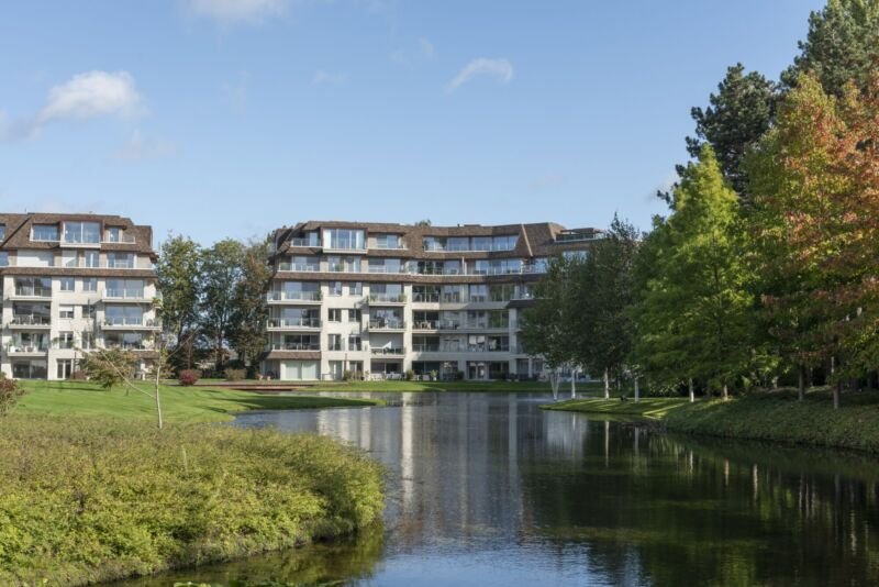 Alle appartementen hebben zon gerichte terrassen en zicht op de vijver en het groen, weg van alle drukte, lawaai of verkeer.