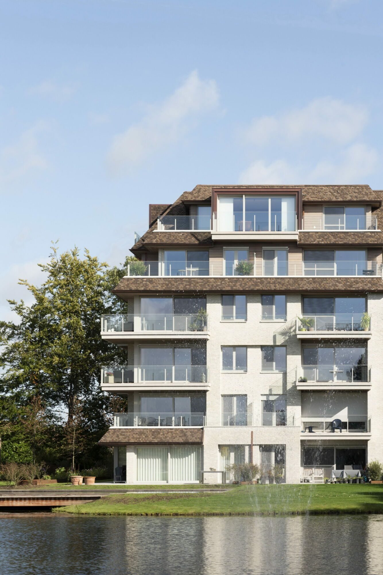 Alle appartementen hebben zon gerichte terrassen en zicht op de vijver en het groen, weg van alle drukte, lawaai of verkeer.